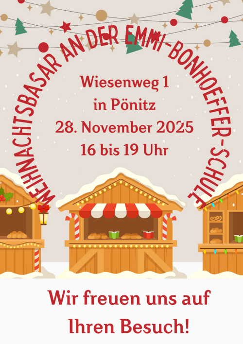 Am Freitag, dem 28. November 2025, lädt die Emmi-Bonhoeffer-Schule in Pönitz von 16 bis 19 Uhr herzlich zum Weihnachtsbasar ein.