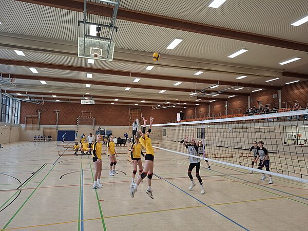 Im Wettbewerb der Jungen waren mehrere starke Teams vertreten: das Johann-Heinrich-Voß-Gymnasium Eutin, das Gymnasium am Mühlenberg, das Ostseegymnasium Timmendorfer Strand sowie die Gastgeber der Emmi-Bonhoeffer-Schule Pönitz. Unsere Jungenmannschaft kämpfte engagiert und zeigte in jedem Spiel großen Einsatz. Am Ende erreichten sie einen respektablen 4. Platz und sammelten wertvolle Turniererfahrung gegen starke Gegner.