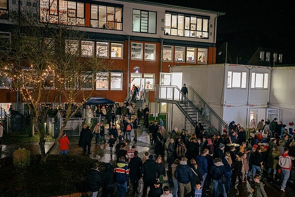 Hierfür sind die Schulleitung, zahlreiche Kolleginnen und Kollegen, Mitarbeiterinnen und Mitarbeiter, Elternvertreter sowie Schülerinnen und Schüler vor Ort.